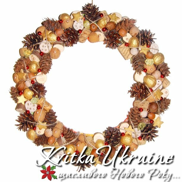 Інтер'єрний новорічний вінок та топіарій №6 в еко стилі