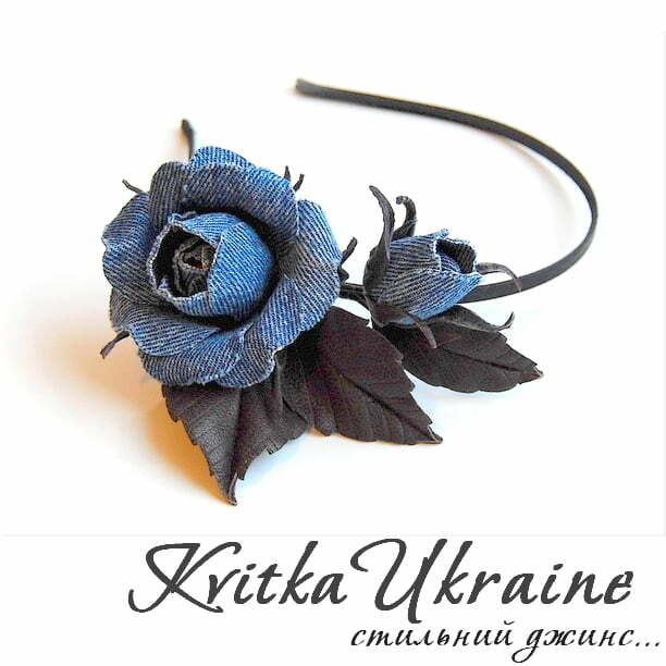 Комплект "Джинсовий" (обруч, брошка)