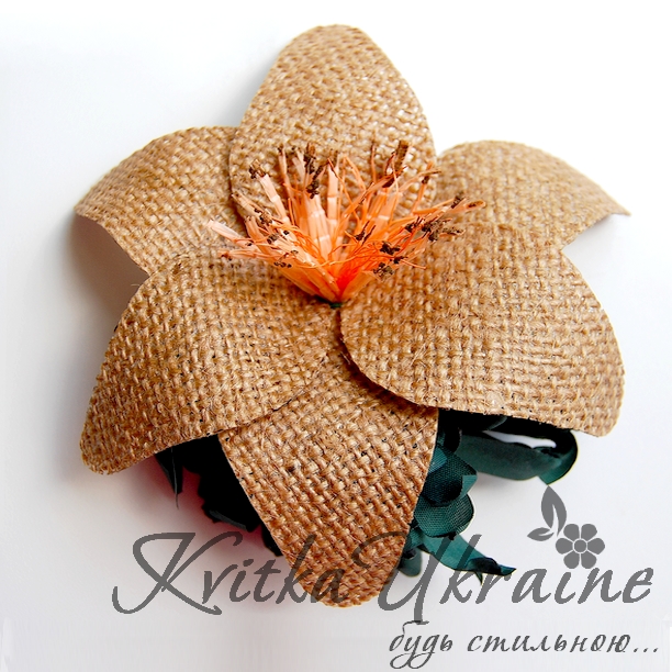 Заколка "Лілія з мешковини-1"